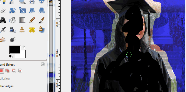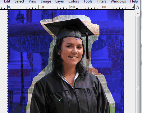 (3) Now use your brush to paint over your fourground (girl in cap & gown in my case).