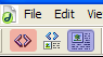 | You can use Dreamweaver in design view (blue) or code view (red). The middle button is for split view. | ![]() |