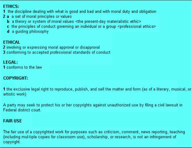 Copy & PasteA student needs some information to do a paper for a class. The student discovers helpful and relevant information on the Internet and decides to copy and paste the material onto the paper. What are the relevant ethical issues involved in such a decision? How would you guide the student in making this decision and why? |