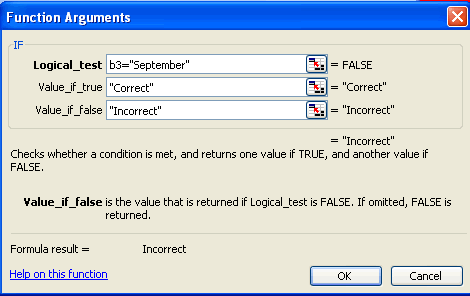 Here's how you can fill out the IF function arguments for cell C3 that will check the contents of cell B3 to see if it contains the right answer.