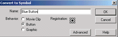 | 6. Make sure everything is still selected (CTRL-A) then right click and choose "Convert to Symbol..." Name it "Blue Button" and select "Button" then click OK. |