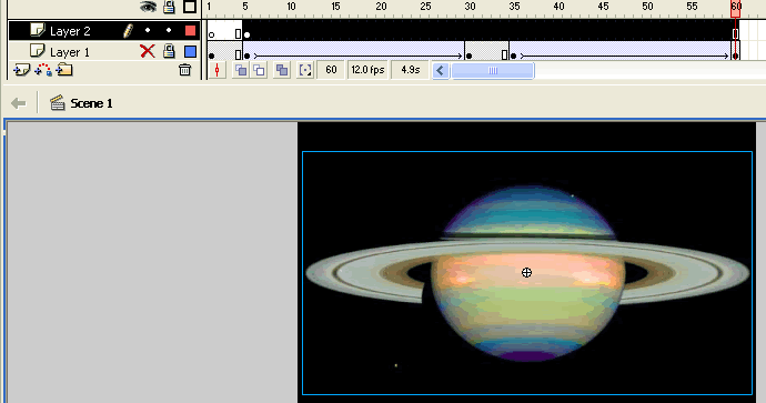 | 9. Make a motion tween between frames 5 and 30 and between 35 and 60. | |