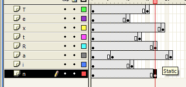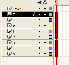 Optional Step (4) You can delete Layer 1. Use trash can. Optional Step (5) If you'd like each letter to have a border, do it now. (6) Select keyframe 1 in each layer and press F8 (Convert to Symbol) ( (8) Insert a keyframe randomly in each layer (F6).