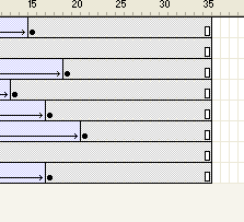 (12) CTRL+enter and enjoy the rain. Optional Step (13) Window>Common Libraries>Sounds. Select the keyframe at the end the tween for each layer and drag the sound to the stage. Repeat for each layer. Optional Step (14) Select the keyframe at the end of the tween for each layer. Press F6 twice. Now you have three consecutive keyframes. Select the middle of the three keyframes. Press the up arrow three times. Now each letter will have a little bounce when it hits. |