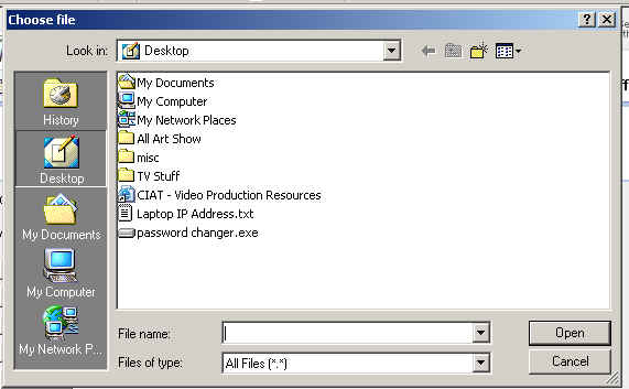 | Step 4: ..... choose the file you want to send. Let your mouse to the work, don't type the name in yourself. | ![]() |