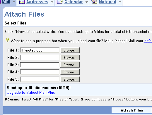 Yahoo attachments