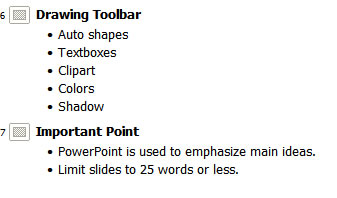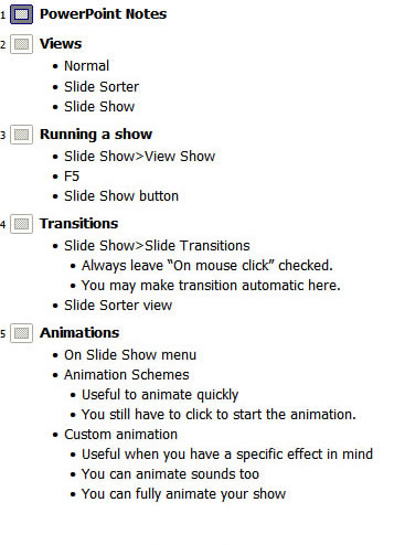(1) Switch to Outline View in PowerPoint. Click the view tab, then click the Outline View button