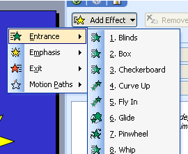Let's just stick with Entrance effects for now. Pick one off the list. |