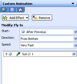 This is the custom animation window. (Slide Show>Custom Animation) Select an object that you want to animate and click the Add Effect button.