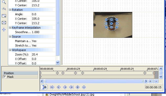| This is the Event Pan crop screen. Note that the keyframes are NOT in the mask timeline. | ![]() |