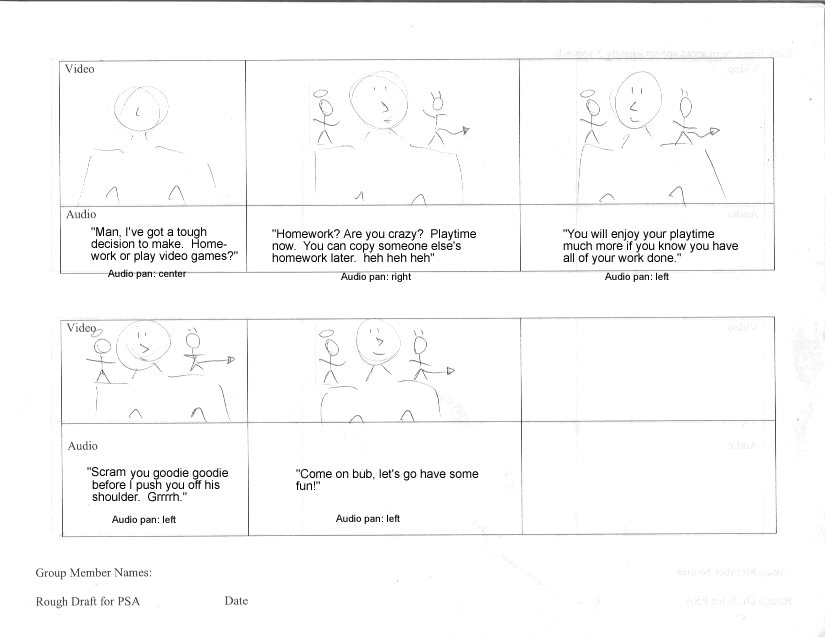 Step 1: Decide who will be in front of the camera and record you clips. You will record three times. First recording is shot as the person in center - you will have two partners stand on either side outside of the shot on either side and read the lines, of Good Advice (GA) and Bad Advice (BA). This first shot is NOT in front of greenscreen. The GA and BA shorts ARE in front of greenscreeen. Then you'll shoot the as GA, with two partners standing out of camera on the right reading the lines. The third recording is shot as BA with two partners standing outside of shot camera left.