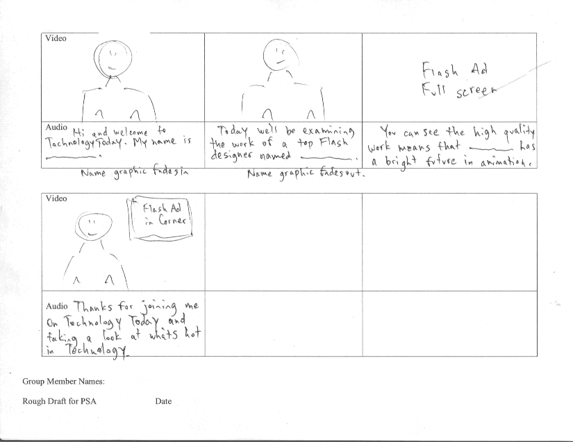 Here's a sample storyboard for this project. Click here to get a blank storyboard.