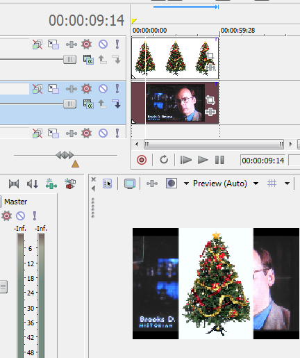 (1) On seperate video tracks, put two pictures in Vegas. Notice in the video preview that one is covering the other.