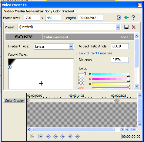 Above you see the first keyframe. Note that gradient points 1 and 2 are in the upper left corner.