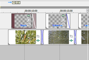 (5) Add a different Video FX to each picture. Video FX can be found on the tab near Transitions and Media Generators. If you want to change the Video FX after you see how it looks, press the green button on the clip. (see the picture of the water below, it has a white button and a green button.....click the green button)