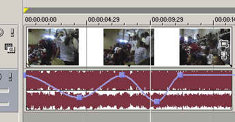 AudioShift-V will insert audio envelopes. Double-click on audio volume (blue line) to add edit points. Drag points up and down.