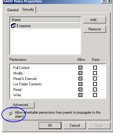 To make sure no one can delete your files, you must make use of file permissions. Give all your group members permission to these files. Include Mr. Martin too. Right click on your folder and select Permissions. You must first remove the Everyone permission. To do this you must "uncheck" the box indicated below.