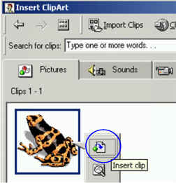 | Click the Insert Clip Art button (looks like a cartoon face) and you will get... | ...the Insert Clipart